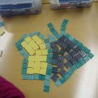 Nach den Ferien sind wir in Klasse 1 und 2 mit verschiedenen Materialien kreativ umgegangen und haben uns auf eine andere Art mit Mathematik beschäftigt. Die Kinder haben in Gruppen mit Mosaik-Fliesen, kleinen Hölzchen, Bierdeckel und runden Plättchen gebaut, entworfen, Tiere oder Sachen nachgebildet und Formen gelegt. Danach haben sie ihre Entwürfe abgezeichnet.