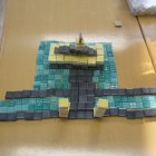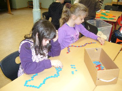 Nach den Ferien sind wir in Klasse 1 und 2 mit verschiedenen Materialien kreativ umgegangen und haben uns auf eine andere Art mit Mathematik beschäftigt. Die Kinder haben in Gruppen mit Mosaik-Fliesen, kleinen Hölzchen, Bierdeckel und runden Plättchen gebaut, entworfen, Tiere oder Sachen nachgebildet und Formen gelegt. Danach haben sie ihre Entwürfe abgezeichnet.