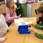 Mit Wasser und Pipetten erforschten die Kinder das Verhalten von Wassertropfen auf verschiedenen Materialien sowie auch auf einem Kohl- und Tulpenblatt.