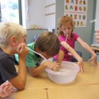 Die Experimente sind so angelegt, dass die zukünftigen Erstklässer mitwirken können. Zudem wollen wir einen Grundstein für eine naturwissenschaftliche Herangehensweise legen.