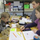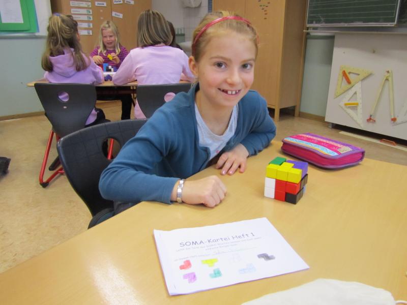 In den vergangenen vier Wochen hatten die Kinder und das Team der Grundschule Sensbachtal die Kisten der Mobilen Mathewerkstatt der Grundschule Mossautal ausgeliehen. Wir bekamen so die Gelegenheit, uns mit vielen interessanten mathematischen Fragestellungen und Phänomenen zu befassen. Hierzu zählten zum Beispiel Streichholzknobeleien, Rangierprobleme, Würfelgebäude und Faltarbeiten. Verschiedene Aufgabenstellungen gab es auch zu Geobrett, Soma-Würfel, Tangram und Pentomino.