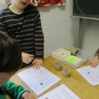 Bereits am 13. März fand an der Grundschule Sensbachtal ein Osterprojekttag statt. Zu Beginn des Tages lernten alle Kinder das Huhn Emma kennen. Dieses besondere Huhn legt farbige Eier: gelb oder orange, aber pro Tag drei Stück. In der Osterzeit kann Emma auch zusätzlich weiße Eier legen. Die Kinder mussten sich nun überlegen, wie Emmas Nester aussehen können. Es wurde fleißig ausprobiert, geknobelt und kombiniert. Im Anschluss an die Mathematikstunde fand ein gemeinsames gesundes Frühstück statt. Nach der Pause durften die Kinder dann Tonkarton-Eier gestalten. Unsere beiden Praktikantinnen Lisa und Johanna hatten hierfür Wachsbatik-Technik und Seidenpapier-Färbetechnik vorbereitet, die den Kindern sichtlich viel Spaß bereiteten. Am Ende des Tages waren sich alle einig: Der Osterprojekttag war toll!