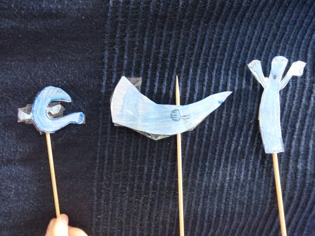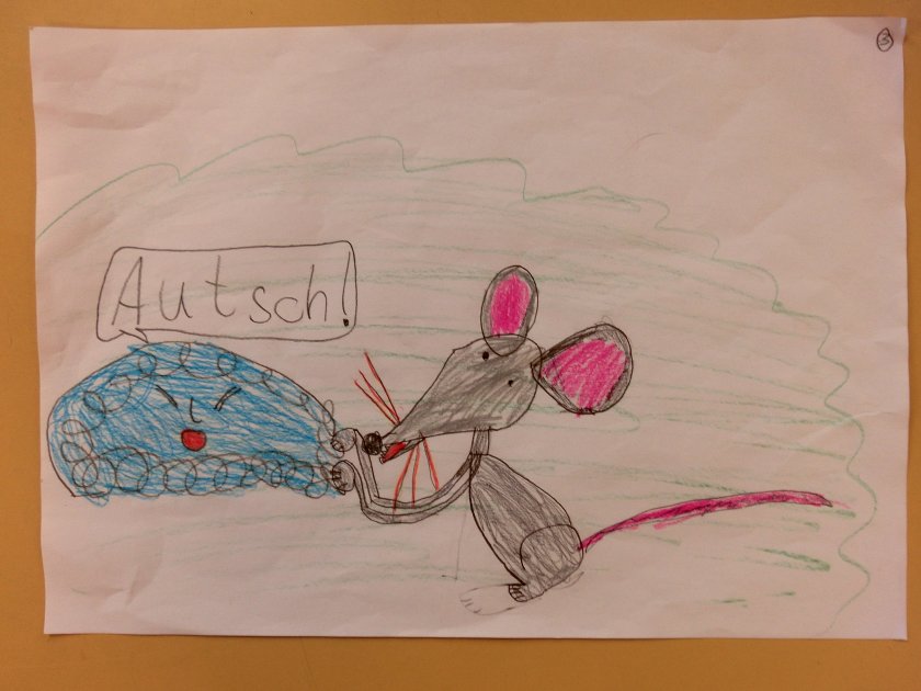 Das haben wir uns auch gedacht und haben uns in verschiedenen Gruppen zusammengefunden. Einige Kinder haben das Gedicht mit Instrumenten vertont, andere haben passende Bilder gemalt und eine weitere Gruppe hat sogar ein Stabpuppenspiel mit selbstgebastelten Figuren inszeniert.
